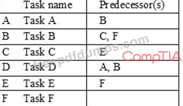 While developing a project schedule, the project manager is attempting to sequence the following tasks: