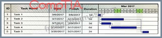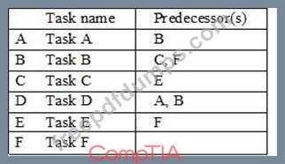 While developing a project schedule, the project manager is attempting to sequence the following tasks: