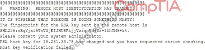 A researcher has been analyzing large data sets for the last ten months. The researcher works with colleagues from other institutions and typically connects via SSH to retrieve additional data. Historically, this setup has worked without issue, but the researcher recently started getting the following message: