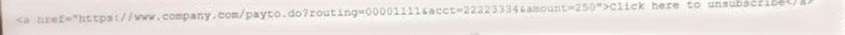 A forensics investigator is examining a number of unauthorized payments the were reported on the company's website. Some unusual log entries show users received an email for an unwanted mailing list and clicked on a link to attempt to unsubscribe. One of the users reported the email to the phishing team, and the forwarded email revealed the link to be: