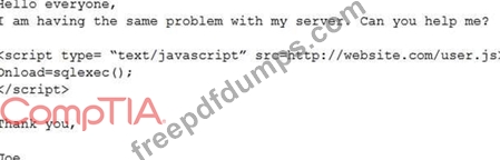 Which of the following BEST describes the attack that was attempted against the forum readers?