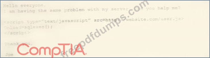 Which of the following BEST describes the attack that was attempted against the forum readers?