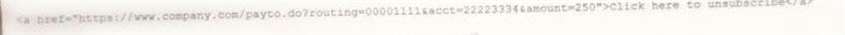 A forensics investigator is examining a number of unauthorized payments the were reported on the company's website. Some unusual log entries show users received an email for an unwanted mailing list and clicked on a link to attempt to unsubscribe. One of the users reported the email to the phishing team, and the forwarded email revealed the link to be: