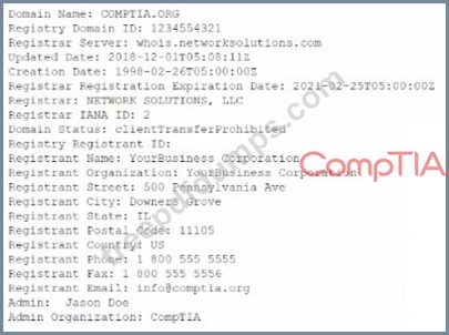 Joe. a security analyst, recently performed a network discovery to fully understand his organization's electronic footprint from a "public" perspective. Joe ran a set of commands and received the following output: