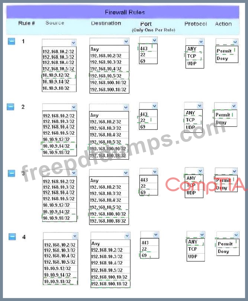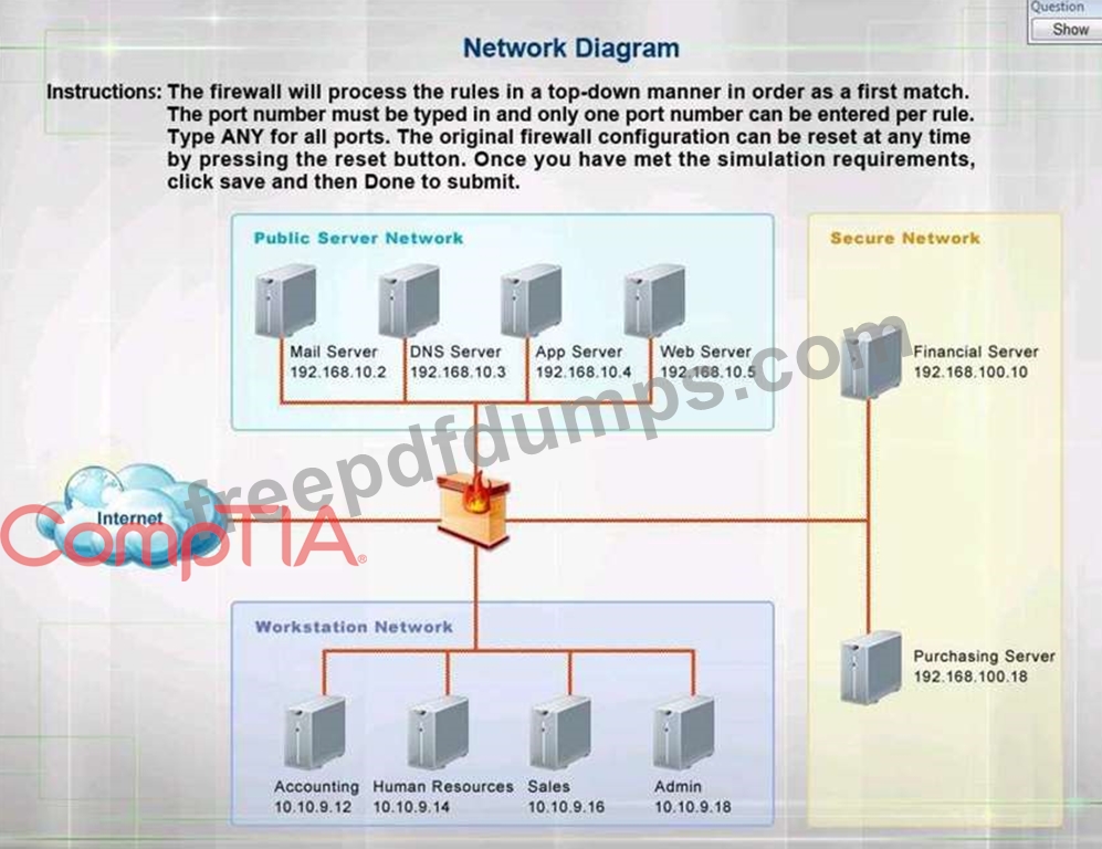 Instructions: The firewall will process the rules in a top-down manner in order as a first match The port number must be typed in and only one port number can be entered per rule Type ANY for all ports. The original firewall configuration can be reset at any time by pressing the reset button. Once you have met the simulation requirements, click save and then Done to submit.