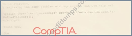Which of the following BEST describes the attack that was attempted against the forum readers?