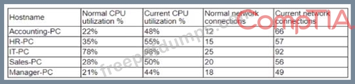 Several users have opened tickets with the help desk. The help desk has reassigned the tickets to a secunty analyst for further review The security analyst reviews the following metrics: