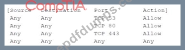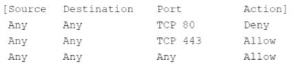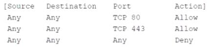 After a recent security incident, a security analyst discovered that unnecessary ports were open on a firewall policy for a web server. Which of the following firewall policies would be MOST secure for a web server?