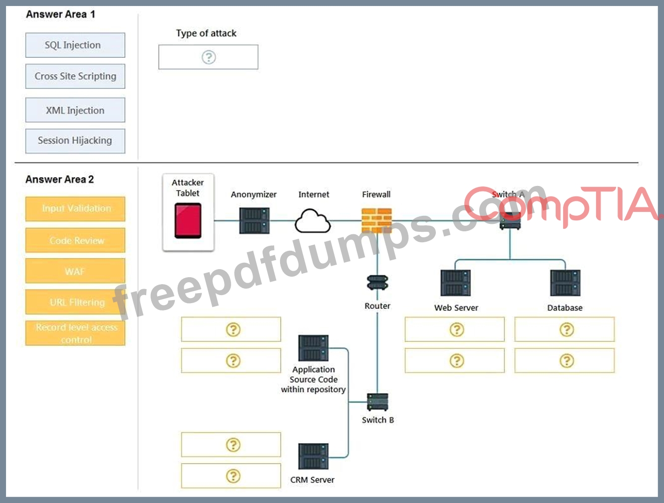 Identify the type of attack that is occurring on the network by clicking on the attacker's tablet and reviewing the output. (Answer Area 1).