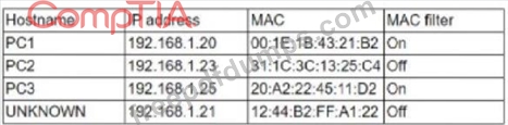 While reviewing the wireless router, a systems administrator of a small business determines someone is spoofing the MAC address of an authorized device.