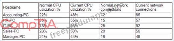 Several users have opened tickets with the help desk. The help desk has reassigned the tickets to a secunty analyst for further review The security analyst reviews the following metrics: