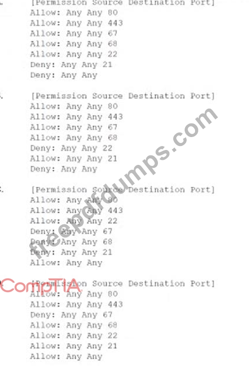 An administrator is configuring a firewall rule set for a subnet to only access DHCP, web pages, and SFTP, and to specifically block FTP. Which of the following would BEST accomplish this goal?