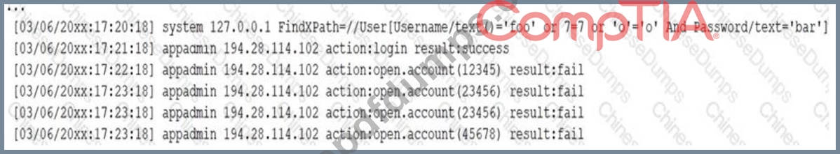 A security analyst receives a SIEM alert that someone logged in to the appadmin test account, which is only used for the early detection of attacks. The security analyst then reviews the following application log: