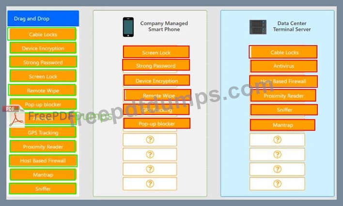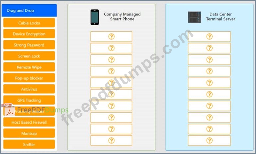 A security administrator wants to implement strong security on the company smart phones and terminal servers located in the data center.