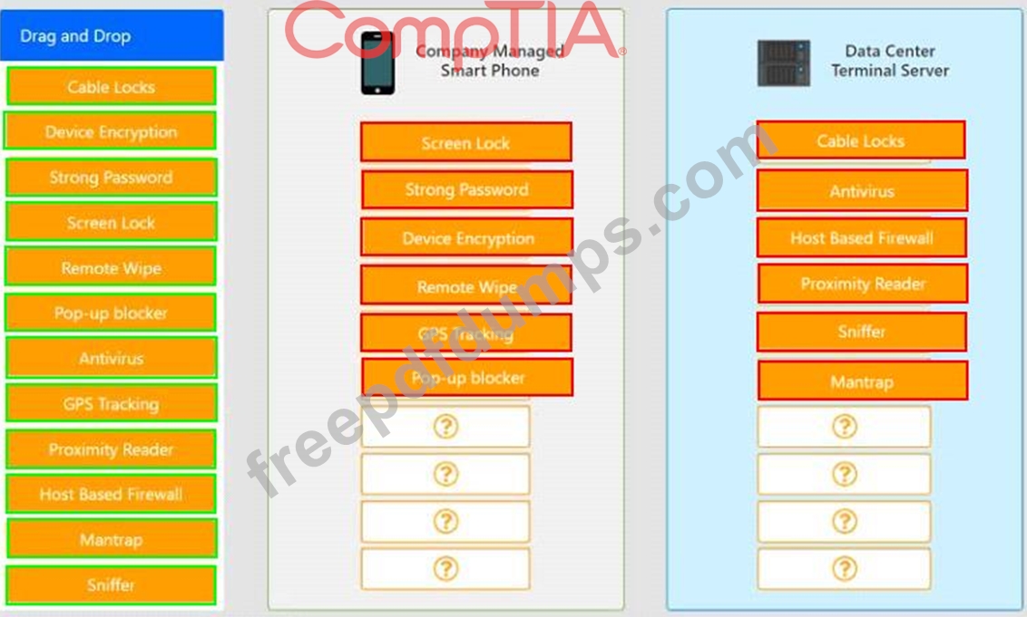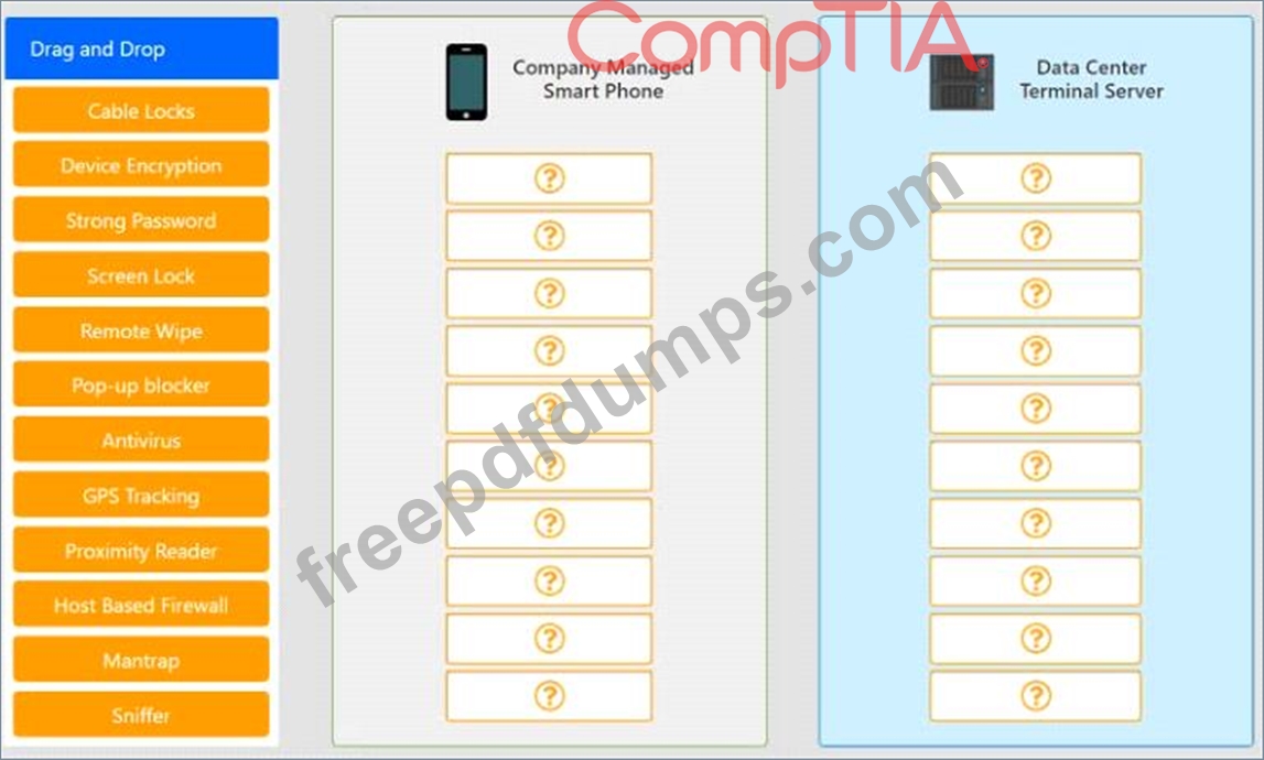 A security administrator wants to implement strong security on the company smart phones and terminal servers located in the data center.
