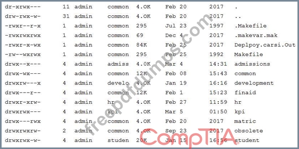 A user from the financial aid office is having trouble interacting with the finaid directory on the university's ERP system. The systems administrator who took the call ran a command and received the following output: