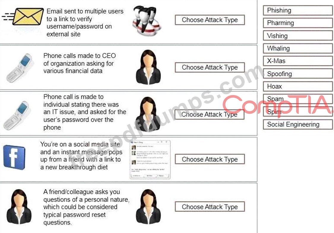 Task: Determine the types of attacks below by selecting an option from the dropdown list.