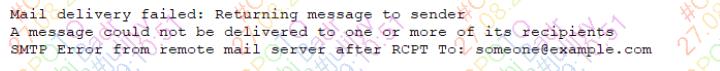 The analyst the checks the email server and sees many of the following messages in the logs.
