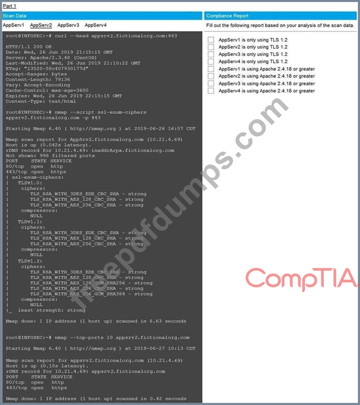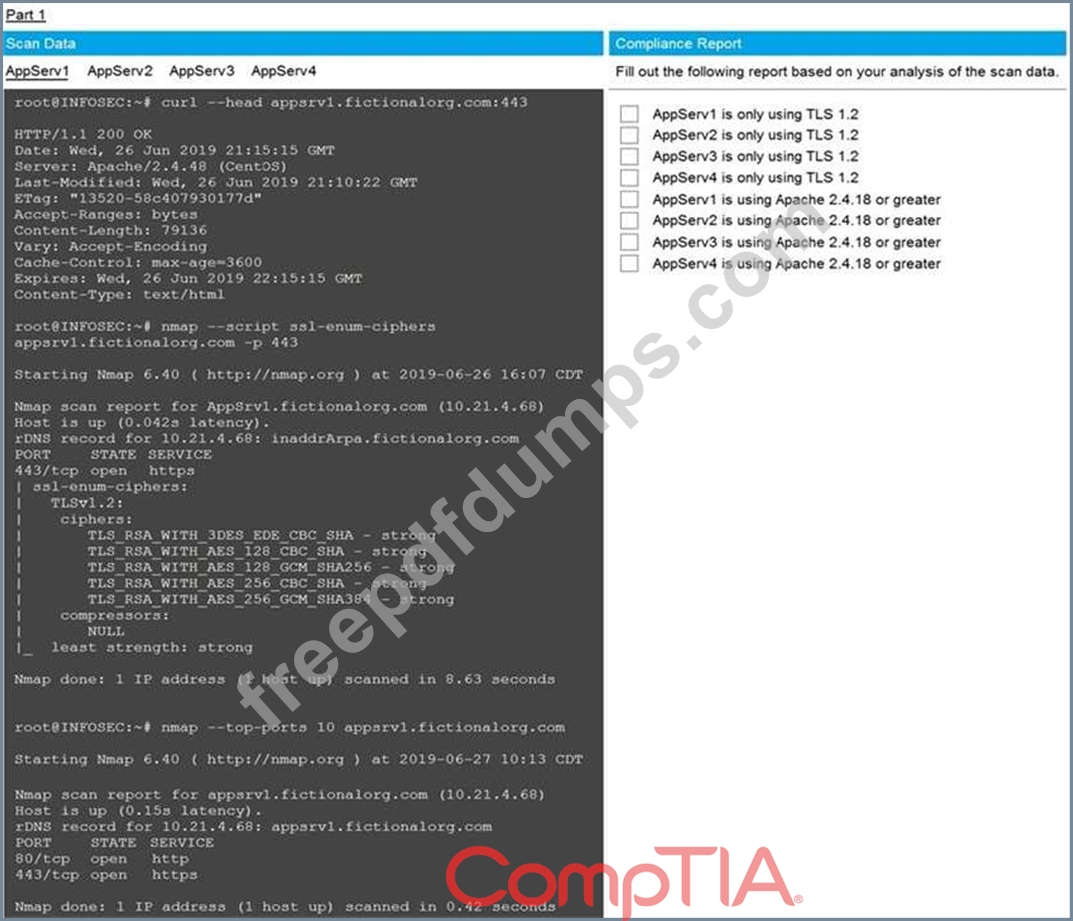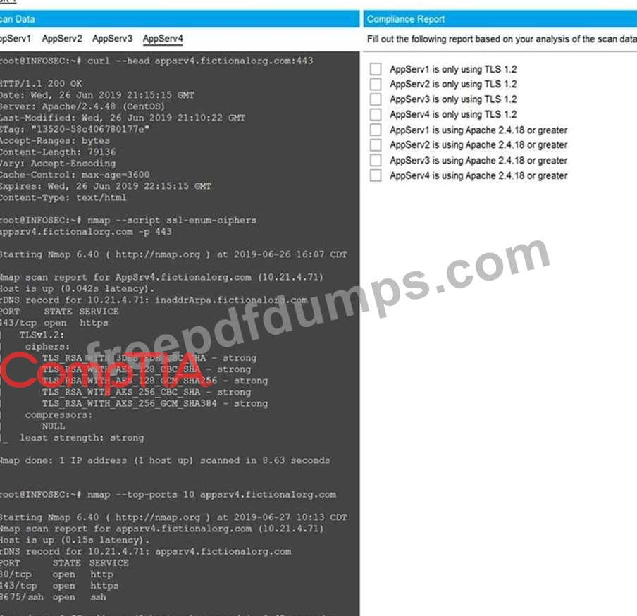 You are a cybersecurity analyst tasked with interpreting scan data from Company A's servers.
