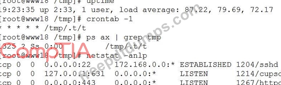 A security analyst has received reports of very slow, intermittent access to a public-facing corporate server. Suspecting the system may be compromised, the analyst runs the following commands: