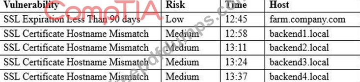 depth=0 /0=farm.company.com/CN=farm.company.com/OU=Domain Control Validated Which of the following results BEST addresses these findings?