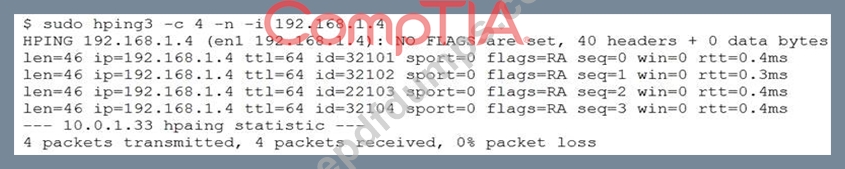 A security analyst is trying to determine if a host is active on a network. The analyst first attempts the following: