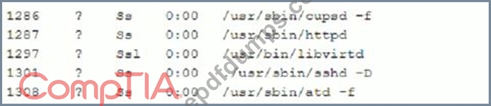A security analyst is investigating a compromised Linux server. The analyst issues the ps command and receives the following output.