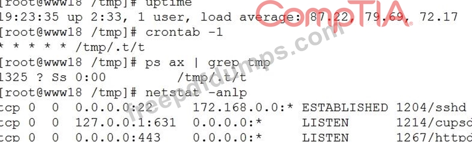 A security analyst has received reports of very slow, intermittent access to a public-facing corporate server. Suspecting the system may be compromised, the analyst runs the following commands: