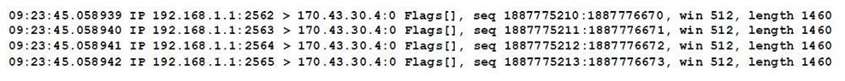 A company has been a victim of multiple volumetric DoS attacks. Packet analysis of the offending traffic shows the following: