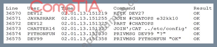 A security analyst is reviewing the logs from an internal chat server. The chat.log file is too large to review manually, so the analyst wants to create a shorter log file that only includes lines associated with a user demonstrating anomalous activity. Below is a snippet of the log: