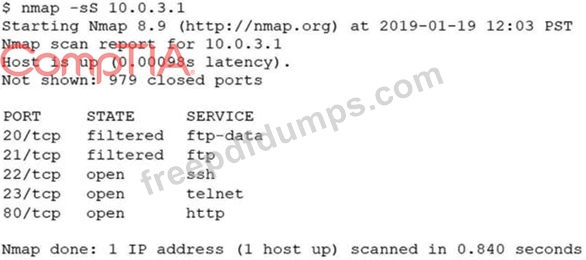 An analyst performs a routine scan of a host using Nmap and receives the following output: