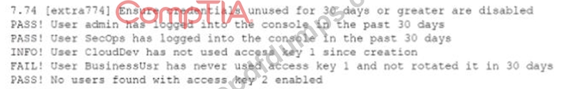 While conoXicting a cloud assessment, a security analyst performs a Prowler scan, which generates the following within the report: