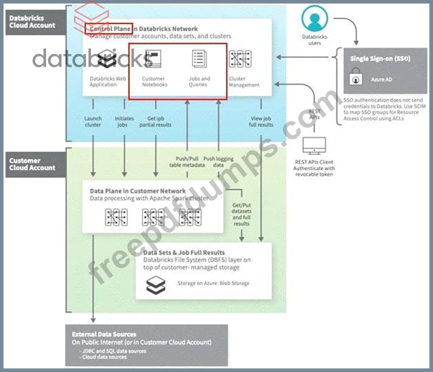 Which of the following locations in the Databricks product architecture hosts the notebooks and jobs?