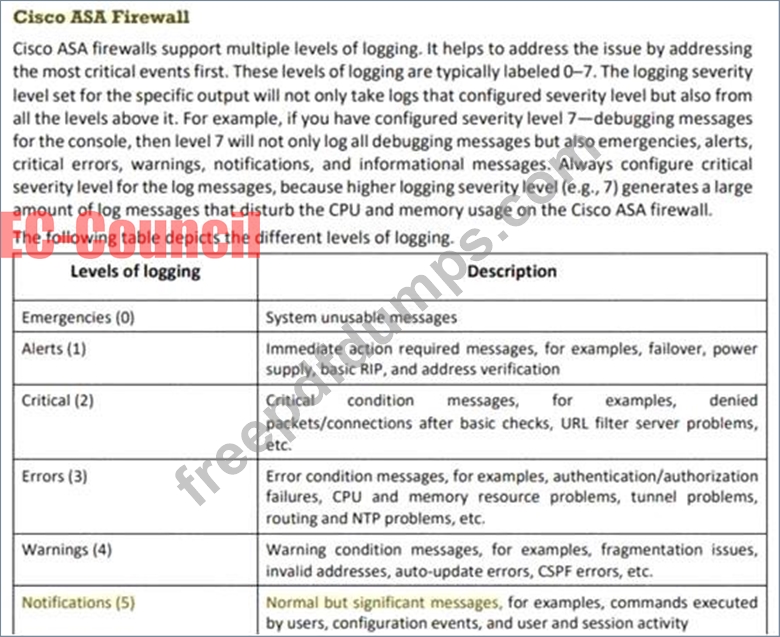 May 06 2018 21:27:27 asa 1: %ASA -5 - 11008: User 'enable_15' executed the 'configure term' command What does the security level in the above log indicates?