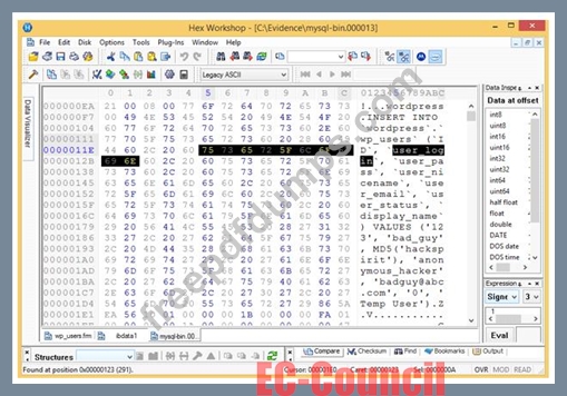 Analyze the hex representation of mysql-bin.000013 file in the screenshot below. Which of the following will be an inference from this analysis?