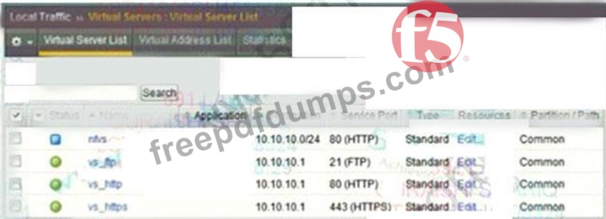 A user attempts to connect to 10.10.10.1.80 using FTP over SSL with an FTPS client. Which virtual server will match and attempt to process the request?