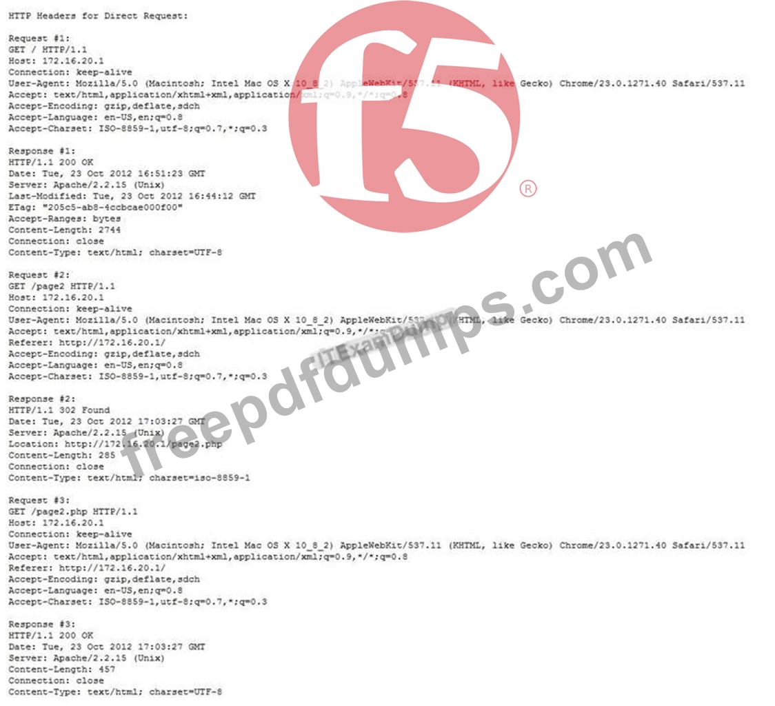 An application owner claims an LTM device is delaying delivery of an HTTP application. The LTM device has two VLANs, an internal and an external. The application servers reside on the internal VLAN. The virtual server and clients reside on the external VLAN.