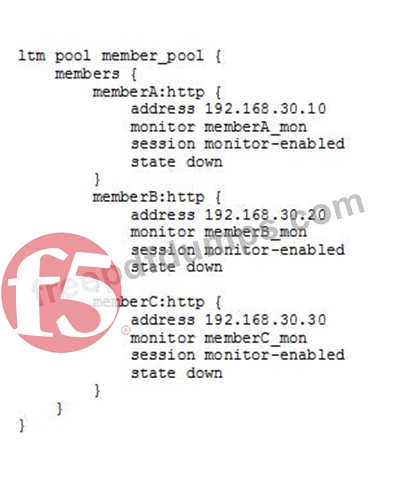 An LTM device is serving an FTP virtual server that has three pool members. The FTP pool members are monitored via TCP port 21. Customers are reporting that they are able to log in, but are sometimes unable to upload files to the server.
