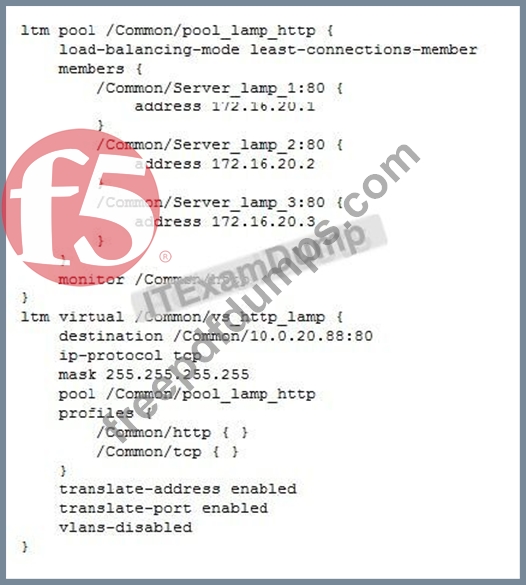 10.0.20.1:60048 10.0.20.88:80 10.0.20.1:60048 172.16.20.1:80 tcp 3 (tmm: 0) 10.0.20.1:60050 10.0.20.88:80 10.0.20.1:60050 172.16.20.3:80 tcp 3 (tmm: 0) 10.0.20.1:60047 10.0.20.88:80 10.0.20.1:60047 172.16.20.2:80 tcp 3 (tmm: 0) 10.0.20.1:60049 10.0.20.88:80 10.0.20.1:60049 172.16.20.1:80 tcp 3 (tmm: 0)