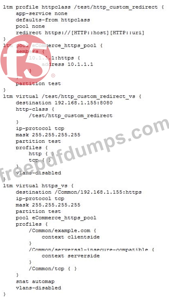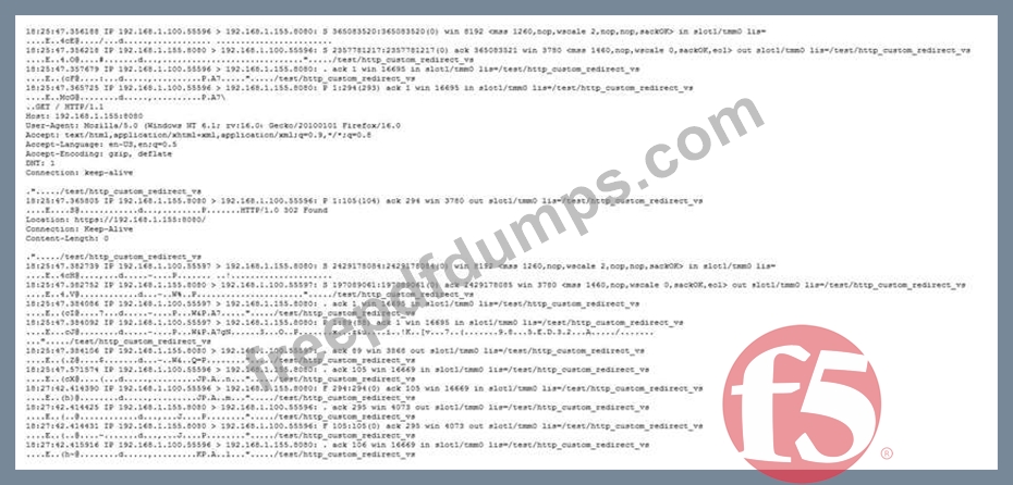An LTM Specialist is reconfiguring a virtual server to redirect all clients to HTTPS. Testing reveals that the redirect is functioning incorrectly. As part of the troubleshooting process, the LTM Specialist performs a packet capture.