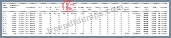 Based on the output of the tmsh interface show command, what is the issue?