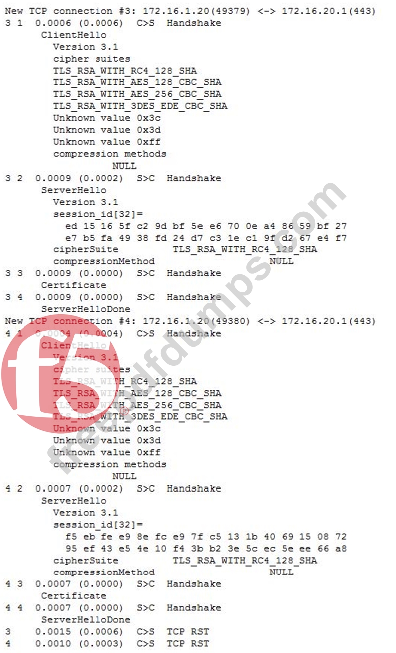 A client side ssldump did NOT show any differences between the traffic going directly to the server and the traffic being processed by the LTM device. However, packet capture was done on the server, and differences were noted.
