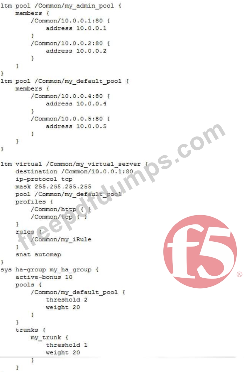 What happens if the pool member server with IP address 10.0.0.4 becomes totally unresponsive to the active LTM device, but is still responsive to the standby LTM device?