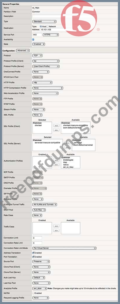 Which configuration change will allow the application to function through the virtual server?