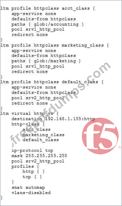 An LTM Specialist is reviewing the virtual server configuration on an LTM device.