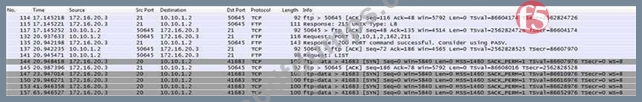 An LTM Specialist is investigating reports that users are unable to perform some commands through an FTP virtual server. The LTM Specialist performs a capture on the server side of the LTM device.