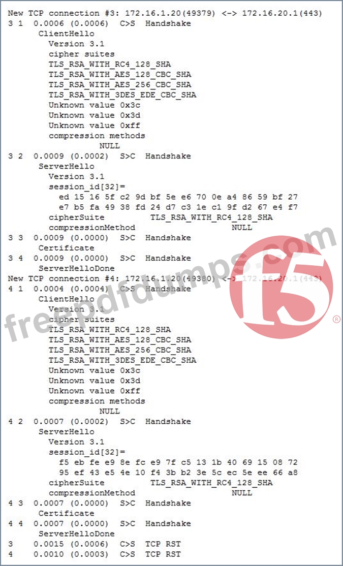 A user CANNOT connect to an HTTP application. To understand the problem and find a solution, the LTM Specialist runs two concurrent traces on the LTM device, with the following results: