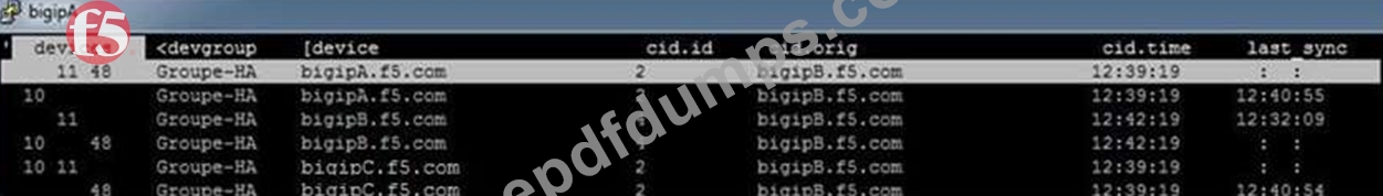 An LTM Specialist is troubleshooting a sync-failover group of three BIG-IP LTM devices. The command used is "tmsh run cm watch-devicegroup-device." What does the output mean?