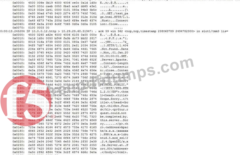 The decoded TCPDump capture is a trace of a failing health monitor. The health monitor is sending the string shown in the capture; however, the server response is NOT as expected. The receive string is set to 'SERVER IS UP'.
