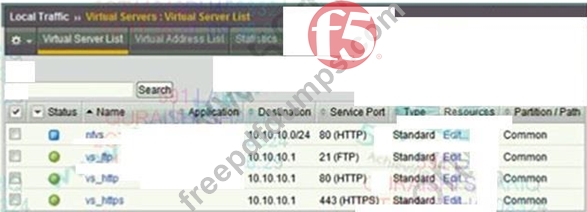 A user attempts to connect to 10.10.10.1.80 using FTP over SSL with an FTPS client. Which virtual server will match and attempt to process the request?